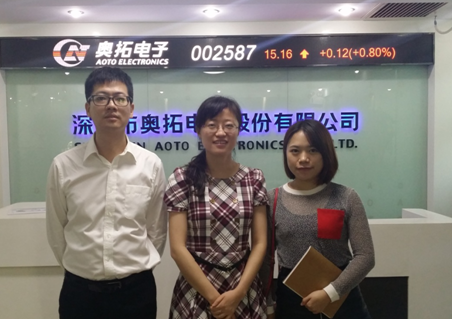 2016年11月16日下午,中财生生资本投资部丙科研究员吴羽、沈晨曦和深圳中财生生投资江孟桃,对位于深圳科技园的奥拓电子股份有限公司进行了实地调研。此次调研得到了董秘孔总热情的接待,我司人员就奥拓电子目前所处的行业概况、发展现状以及公司未来的战略规划等问题与...